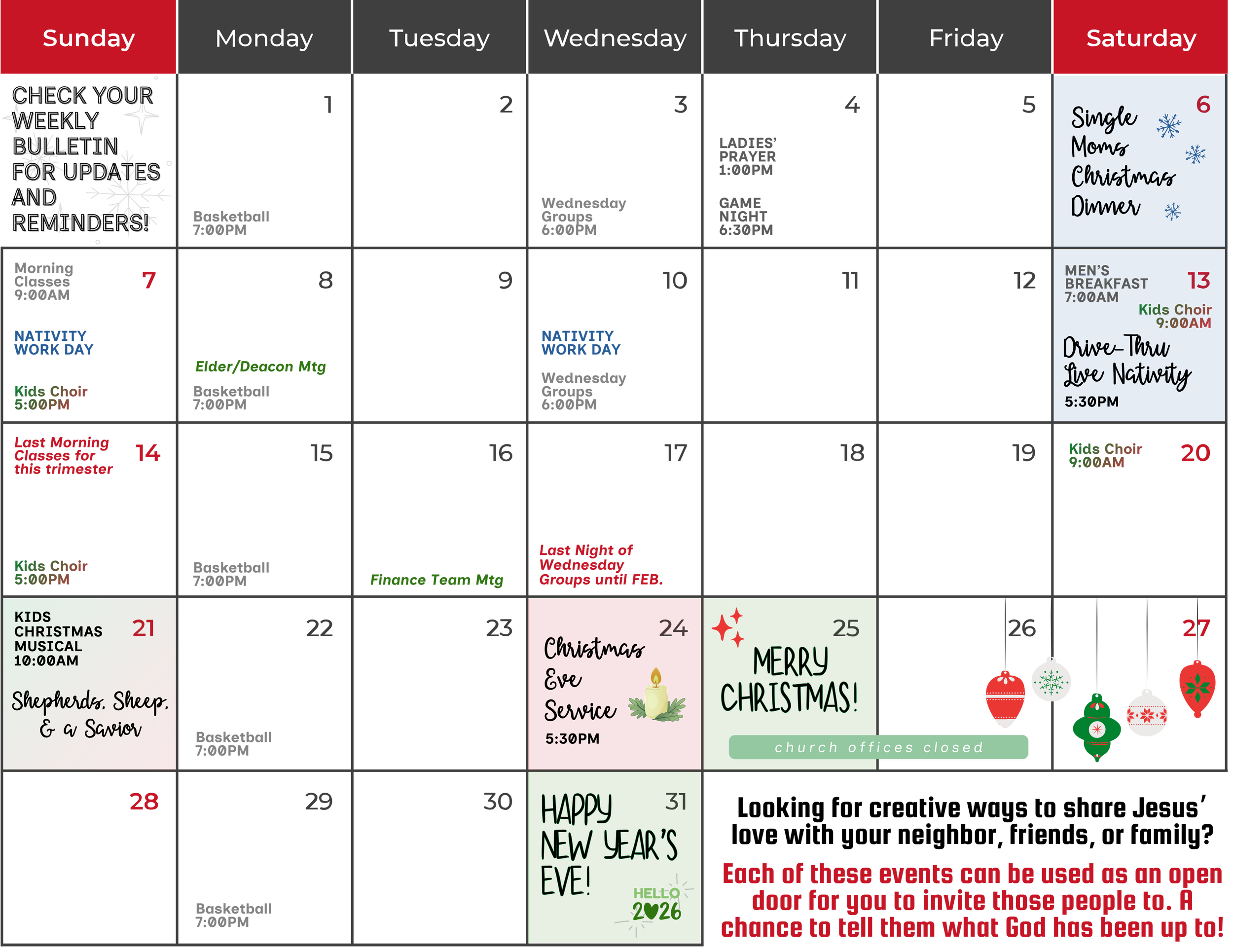 Please stay afterward on DEC 13 to help us finish setting up for our Live Nativity!